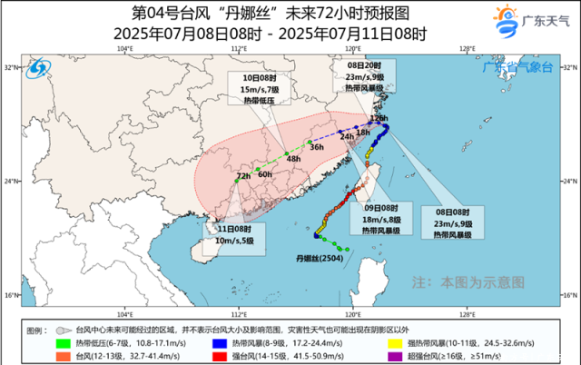 预计,8-9日广东仍以高温伴分散强雷雨天气为主,中北部市县最高气温35~37℃,注意防暑降温和防御局地强雷雨;10-12日,受“丹娜丝”残余环流和季风影响,广东大部将有一次明显降雨过程,高温有所缓解,但需防御强降雨及其引发的次生灾害。详情>>>